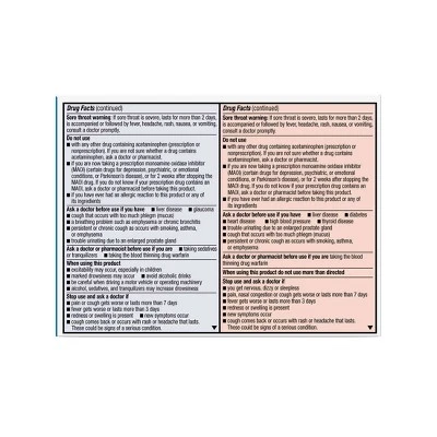 - PAIN RELIEVER AND FEVER REDUCER: Both Daytime and Nighttime cold medicine contain acetaminophen to help relieve aches, fever and sore throat.