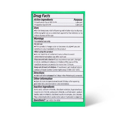 Treat dry eye symptoms with this High Performance Lubricant Eye Drops from up & up™. These dry eye relief drops lubricate and refresh your eyes to offer temporary relief from burning and irritation due to dryness. Featuring a soothing formula, these lubricating eye drops can be used as a protectant from further irritation and allergies. Compact in size, this 0.5-ounce small bottle is easy to carry in your bag, purse or pocket to provide relief from dry eyes while on the go.
