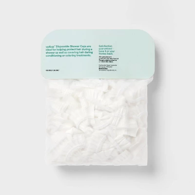 Take your personal care routine up a notch with these 30-Piece Plastic Disposable Shower Caps from up&up™. Made of plastic, these disposable caps are water-resistant, preventing hairs from extra damage, and come with an elastic closure for a snug, stay-put fit. These shower caps are designed in a white hue and are suitable for most hair types.