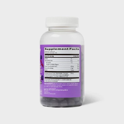 These 150-Count Elderberry Gummies from up&up™ are a great option for taking care of your health. This bottle includes 150 natural elderberry-flavored gummies for adults, providing 1.7 grams of black elderberry per serving with vitamin C and zinc for immune support.