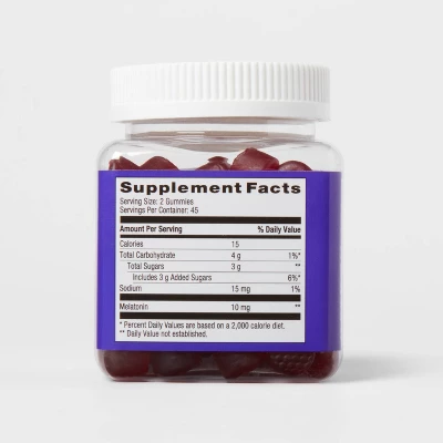 These Adult Melatonin 10-Milligram Gummies from up&up™ are just what you need to get a better night’s sleep. These gummies contain ten milligrams each of melatonin, which may help with occasional sleeplessness. Intended for adult use only, the gummies have a natural strawberry flavor with other natural flavors, and there are 90 gummies to each pack.