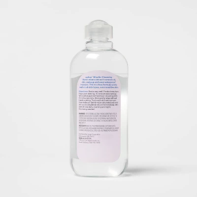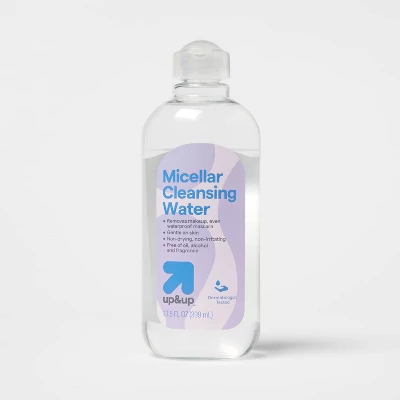 Clean your face and remove makeup with the All-In-One Micellar Face Cleansing Water from up&up™. This micellar cleansing water helps remove makeup including waterproof mascara and does not require rinsing. Suitable for all skin types, this water-based cleansing water is oil-free and dermatologist tested.