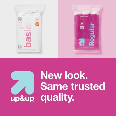 Basic Cotton Rounds from up&up™ make it easy to remove or apply your daily skincare and makeup products. These soft cotton rounds are a must-have in your beauty essentials — you can use them to effectively wipe off makeup or nail polish, or you can reach for them to apply toner or lotion. Their soft construction is gentle on the skin for comfortable and easy use, and they’re quilted for added strength and durability.