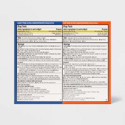 Keep cold and flu treatment ready at home with the 96-Count Daytime & Nighttime Maximum Strength Cold & Flu Softgels from up&up™. This pack of 96 softgels includes 48 for daytime and 48 for nighttime, with acetaminophen, dextromethorphan HBr, phenylephrine HCI and doxylamine succinate to help relieve nasal congestion, coughs, headaches, fevers, sore throats and sneezing and runny noses. Suggested for ages 12 and above, these maximum strength softgels are a great addition to your medicine cabinet.