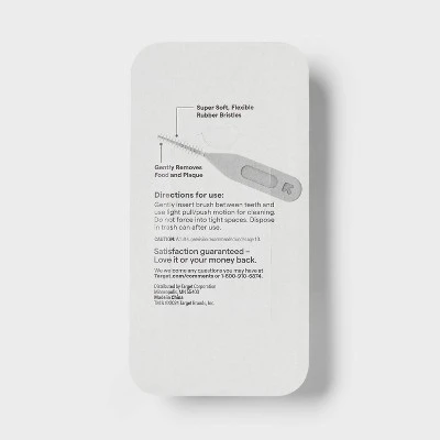 Enhance your oral hygiene regimen with the 104-Count Dental Picks for Between Teeth from up & up™. These dental picks feature super soft, flexible rubber bristles that help gently remove food and plaque from in between the teeth, making them great for use after meals. This pack includes 104 dental picks, and it comes with a travel case for easy carrying.