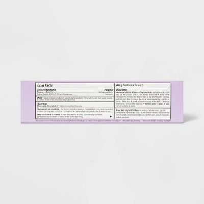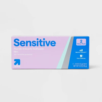 Achieve a brighter smile with this Extra-Sensitive Whitening Toothpaste from up&up™. With sodium fluoride as the primary active ingredient, this toothpaste whitens teeth, helps prevent cavities and helps protect against painful sensitivity of the teeth. Suitable for ages 12 and above, this toothpaste is a must-have addition to your dental care routine.