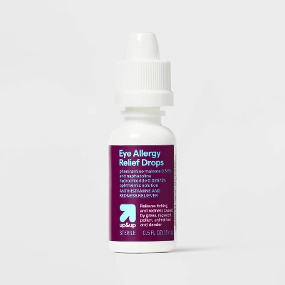 up&up™ Eye Allergy Relief Drops provide instant relief from red, itchy eyes. These allergy eye drops can be used up to four times a day to combat allergy symptoms caused by ragweed, grass, animal hair and more. For a refreshing break from your allergies, look no further than these eye drops.