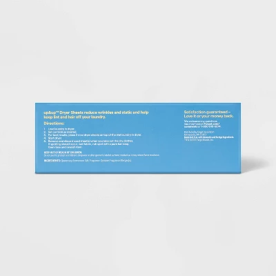 up&up Fresh Linen scent fabric softener dryer sheets help reduce wrinkles and static cling while keeping lint and hair out of your clothes. The Fresh Linen scent of these dryer sheets will provide a long-lasting light, clean scent that you’ll smell while you wear! Designed without phosphates, these scented dryer sheets feature built-in fabric softening agents to help reduce wrinkles and static cling when you dry your clothes. Simply place them on your wet laundry before starting the dryer for quick, easy use. As a bonus, these dryer sheets feature a fresh linen fragrance, giving your clothes a clean scent you’re sure to appreciate. This package contains one box of up&up Fresh Linen Fabric Softener Dryer Sheets.