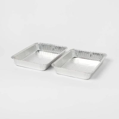 Bake fresh cakes for guests, travel and other occasions with the 2-Count of Foil Cake Pan Aluminum Disposable Bakeware from up&up™. This bakeware is designed in a rectangular shape to help you bake your favorite cake. Made of aluminum, this foil cake pan pack is oven-safe up to 500°F to meet your cooking needs. Plus, it has a disposable design for easy cleanup after use.