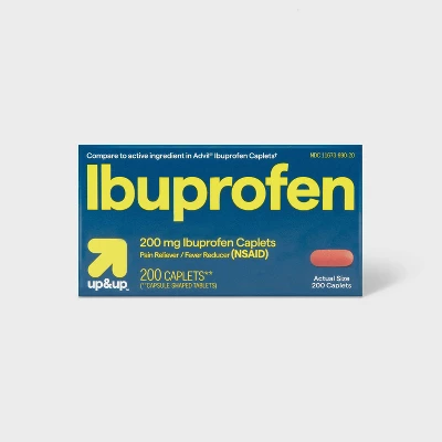 Compare to the active ingredient in Advil Ibuprofen Caplets. Don’t let aches and pains slow you down. Up&Up Ibuprofen Tablets 200 mg provide powerful pain relief you can trust. They help to temporarily relieve minor aches and pains due to headache, muscular aches, minor pain of arthritis, toothache, backache, the common cold and menstrual cramps. Ibuprofen is the number one doctor recommended OTC active ingredient for back pain (of U.S. physicians surveyed by an independent market research firm). For adults and children 12 years and over. Coated, capsule-shaped tablets.