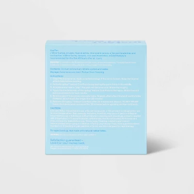 Stock your first aid kit with this two-count box of Instant Cold Packs from up&up™. Perfect for on-the-go use and travel first aid kits, these instant ice packs are a time-honored must-have for bumps, bruises, strains and more. Specifically designed to provide cold therapy without advance freezing, simply give them a squeeze and you’re ready with a cold compress whenever the need may arise — no refrigeration required.