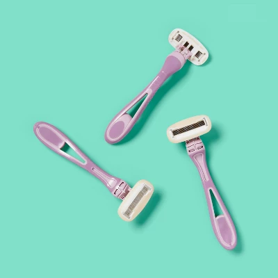 Whether you’re at home or traveling, enjoy a smooth shave with the 3-Count of Moisturizing Halo Women’s 5-Blade Disposable Body Razors from up&up™. This pack of three body razors is designed with moisture halo technology that helps reduce skin irritation for a comfortable shave, and the five-blade pivoting cartridge help the razor glide easily. Dermatologist tested, these disposable razors are ideal for sensitive skin. Suitable for all types of hair, the razors should be rinse cleaned as needed for easy maintenance.