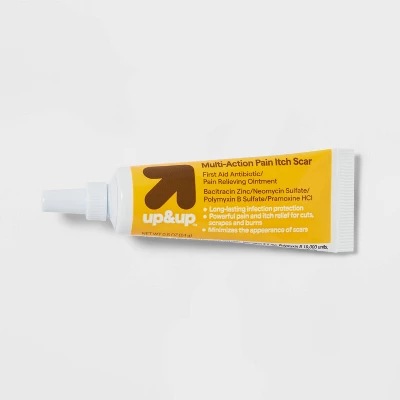 This Multi-Action Antibiotic First Aid Ointment from up&up™ is a must-have addition to your home first aid kit. Formulated with bacitracin as the primary active ingredient, this multi-action first aid ointment provides long-lasting infection protection as well as relief from pain and itching. Great for treating minor cuts, scrapes and burns, the ointment also helps minimize the appearance of scars.