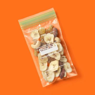 Keep a record of your calorie intake with these 64-Count Portion Pack Bags from up&up™. This handy pack of portion control bags allows you to store a variety of snack items, and helps measure out a serving. Designed for packing a portion-sized snack, these BPA-free, food-safe bags come with clear volume markings that show exactly how much you’re eating, while the double-seal closure locks in freshness and flavor. Convenient for grab-and-go snacking or traveling, these multipurpose food storage bags will become a practical addition in your home kitchen.