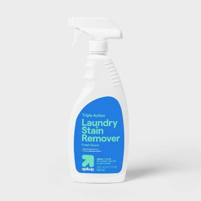 Get rid of those pesky stains on your clothes and linens with this Stain Remover from up&up™. This laundry stain remover comes in a 22-ounce bottle with a spray nozzle for easy and precise application to specific marks and spots. Its triple-acting formula clings to fabric stains during the washing cycle, penetrates them quickly and lifts them off the fabric, while the fresh scent leaves clothes smelling better than ever.