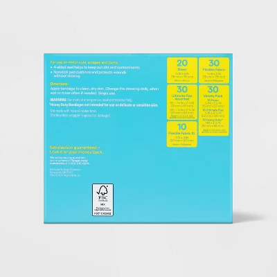 The 120-Count Value Variety Pack Bandages from up&up™ makes a great addition to any first aid kit. This variety pack includes foam, ultimate flex, heavy-duty bandages and more with nonstick pad cushions in assorted sizes, and cover and protect minor wounds, cuts and scrapes. Keep these assorted bandages in your bathroom for home use, or keep some in your car or purse so you’re always ready for the unexpected.